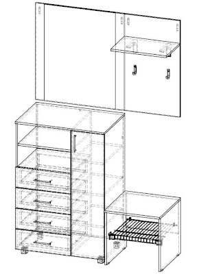 Габаритные размеры композиции (мм) (ШхГхВ): 1300х516х2100
