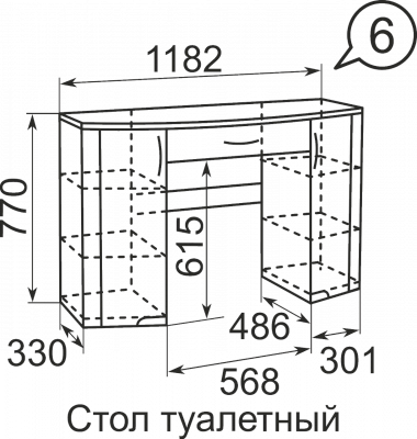 Стол туалетный №6 + полка приставная №11 внутреннее наполнение