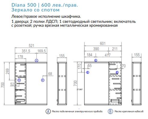 Материал: ЛДСП, ЛМДФ, зеркало, пленка ПВХ, керамика