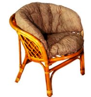 Комплект из натурального ротанга, состоящий из дивана, двух кресел и круглого столика со стеклом.