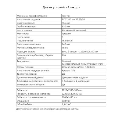 Угловой диван Алькор (Аквилон) – товар доступен к покупке в интернет-магазине simferopolskiy-dommebeli.ru. Цена – 77 980 руб. без учета доставки. Стоимость дополнительных услуг и сроки получения мебели уточняйте у менеджера. Возможен безналичный расчет, оплата по карте на сайте.