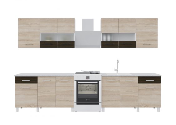 Объединяя два набора, размер кухни можно увеличивать и получать TREND 2600, суммируя наборы. Все кухни собираются в зеркальном исполнении.