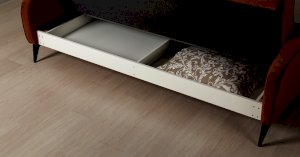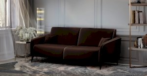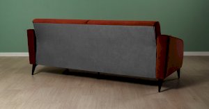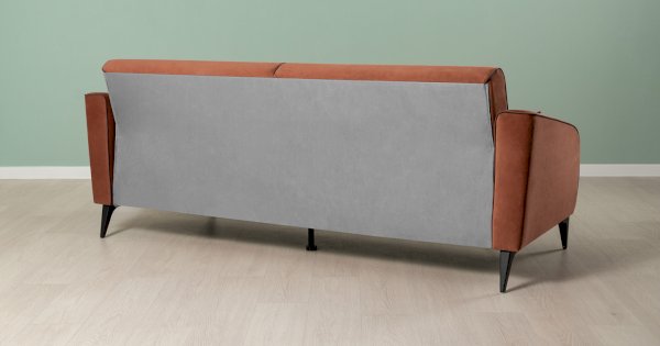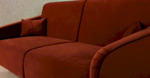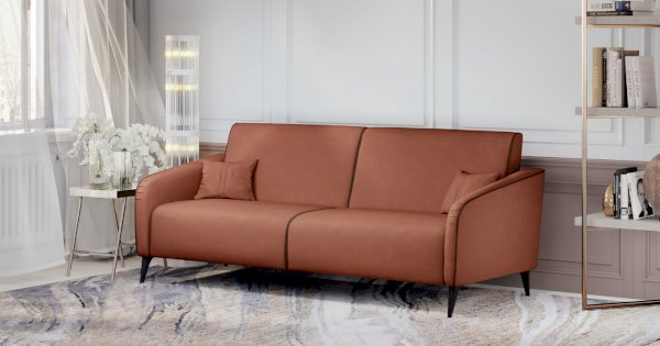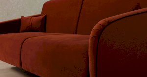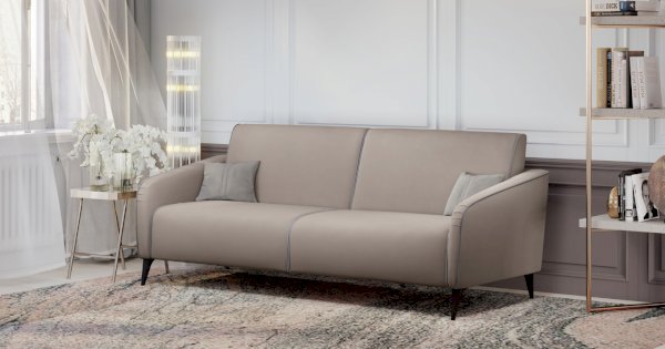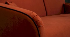Спинка и сиденье разделяются пополам двойным кантом по центру и одинарным по краям сидения, для придания одной единой формы. Подлокотники с изгибом на лицевой стороне и мягкими закругленным углом со складками, с выраженным контрастным ровным кантом по внешнему контуру изделия и изогнутой линией канта.