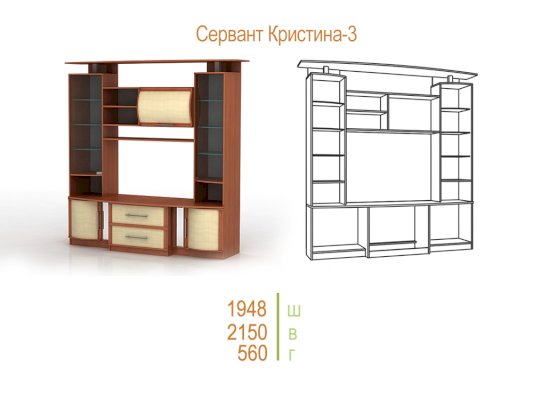 Если у вас есть желание приобрести красивую вместительную стенку, отвечающему современному дизайну благодаря широкому выбору фасадов, присмотритесь к нашей «Кристине»