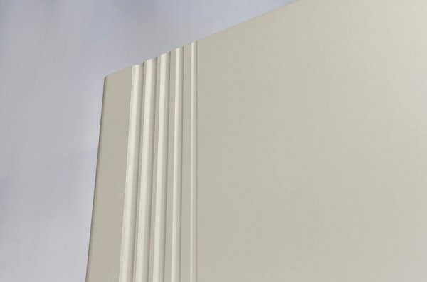 Особое внимание заслуживает фрезеровка фасадов, которая придаёт шкафу изысканный вид. На одной из дверей расположено большое зеркало во весь рост, которое позволит оценить свой образ перед выходом из дома.