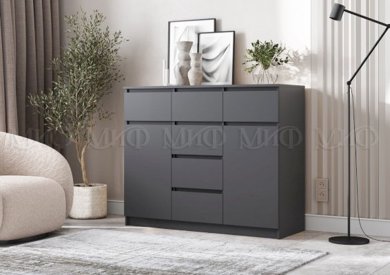 Комод Челси 1200 с 2 дверьми и 6 ящиками (Миф) – товар доступен к покупке в интернет-магазине simferopolskiy-dommebeli.ru. Цена – 9 920 руб. без учета доставки. Стоимость дополнительных услуг и сроки получения мебели уточняйте у менеджера. Возможен безналичный расчет, оплата по карте на сайте.
