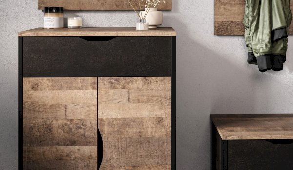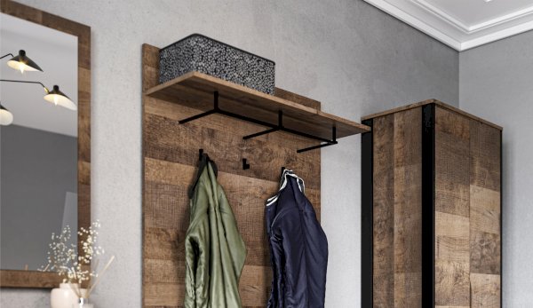 Функциональный шкаф Стокгольм – современное и удобное решение для прихожей, гостиной или спальни в стилях лофт, сканди или эко-минимализм. Трендовый декор – «Дуб Гранж» песочного оттенка с реалистичной имитиацией вручную обработанного дерева, выразительными зернистыми текстурами и характерной формой досок, соответствует последним городским тенденциям. Оригинальные ножки-опоры из МДФ контрастного цвета придают изюминку интерьеру. Внутри предусмотрены полки для белья и отделение с поперечной металлической штангой. Идеально компонуется со всеми модулями системы Стокгольм.