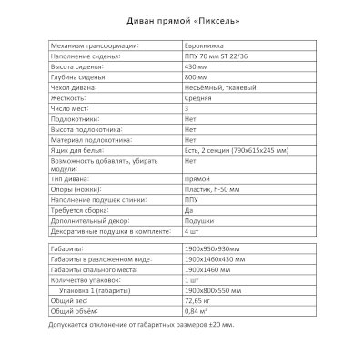 Диван Пиксель (Аквилон) – товар доступен к покупке в интернет-магазине simferopolskiy-dommebeli.ru. Цена – 30 317 руб. без учета доставки. Стоимость дополнительных услуг и сроки получения мебели уточняйте у менеджера. Возможен безналичный расчет, оплата по карте на сайте.