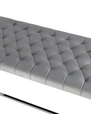 Обивка сиденья выполнена из мягкого велюра - приятного на ощупь, износостойкого и простого в уходе материала. Декорирована каретной стяжкой, которая обладает не только эстетическими свойствами, благодаря такой строчке ткань меньше растягивается и деформируется в процессе эксплуатации.
