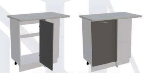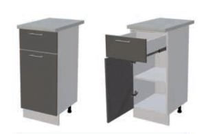 Глубина нижних шкафов без учета столешницы: 444 мм, с учетом столешницы 600 мм