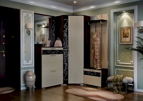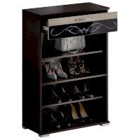 В тумбе 2 секции под обувь с полками, оборудованные газовыми кронштейнами и ящик на шариковых направляющих длиной 300 мм.