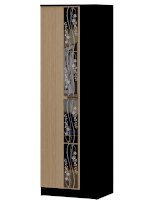 Шкаф СШ-700 "Сабина" 2-створчатый с полкой и поперечной металлической штангой. Фасад облицован зеркалами с пескоструйным орнаментом, повторяющимся во всех элементах системы.